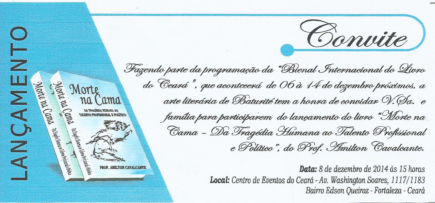 O Técnico da CREDE 8, Professor Amilton Cavalcante, fará lançamento do seu livro na Bienal Internacional do Livro do Ceará, evento que realizar-se-a no Centro de Eventos do Ceará, de 6 a 14 de dezembro.